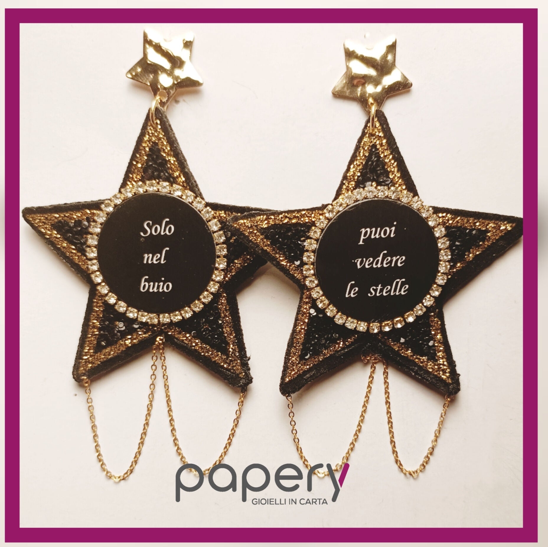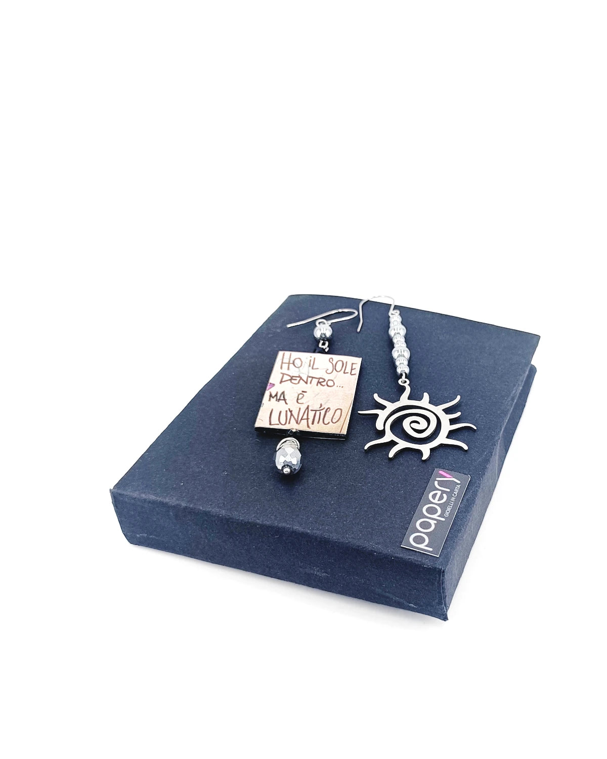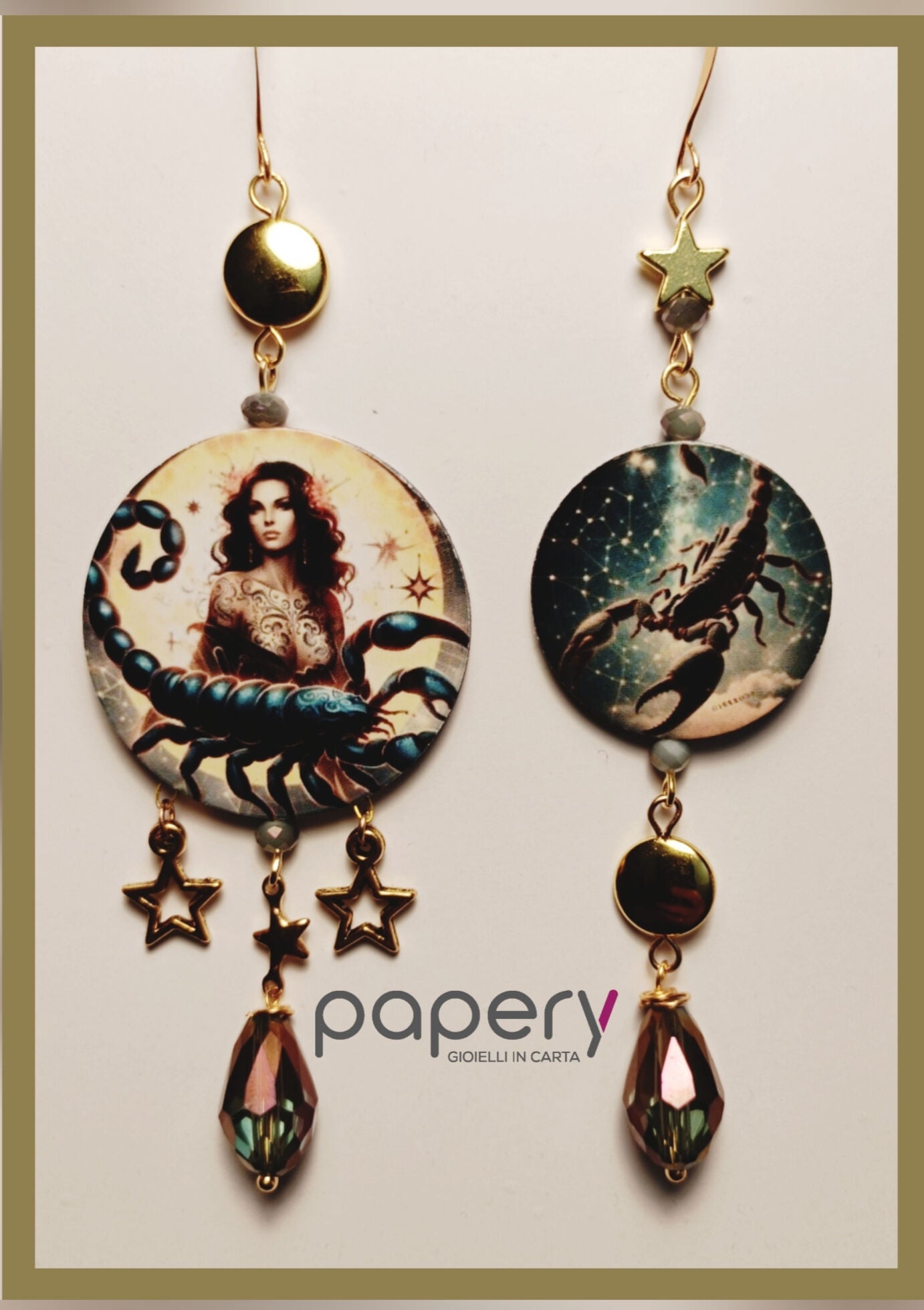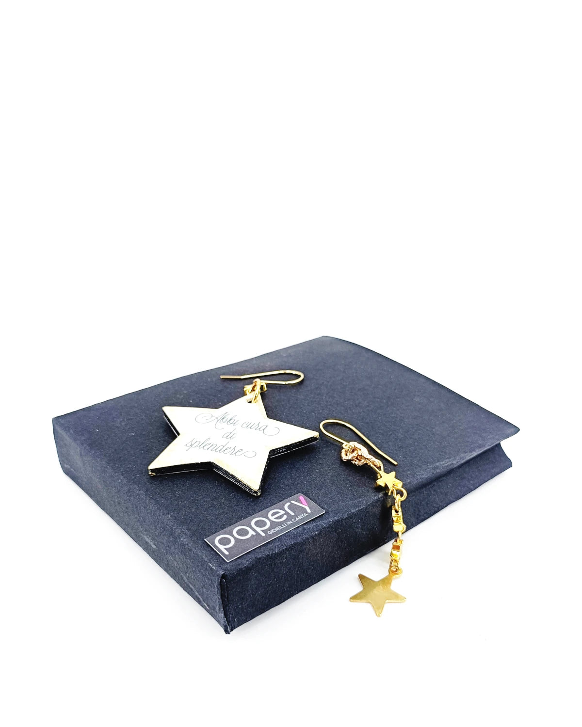 Esplora la magia del cosmo con i nostri gioielli e orecchini di carta, leggeri ed anallergici per il massimo comfort. Ogni creazione è realizzata con una raffinata tecnica multistrato, che dona profondità e resistenza, ispirandosi alle meraviglie del mondo stellare.