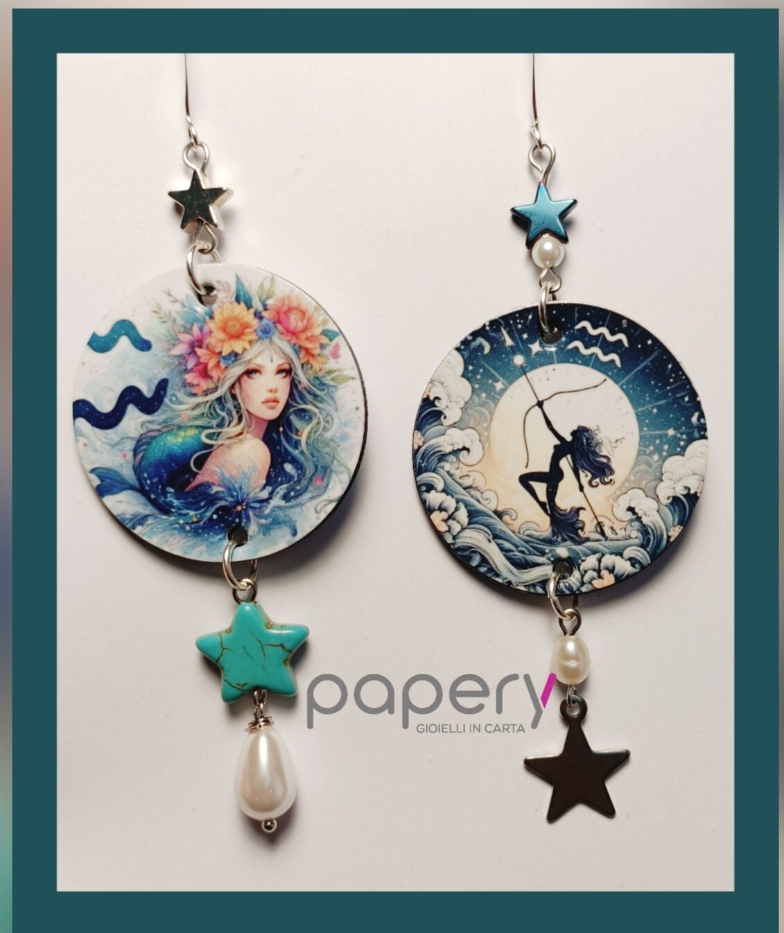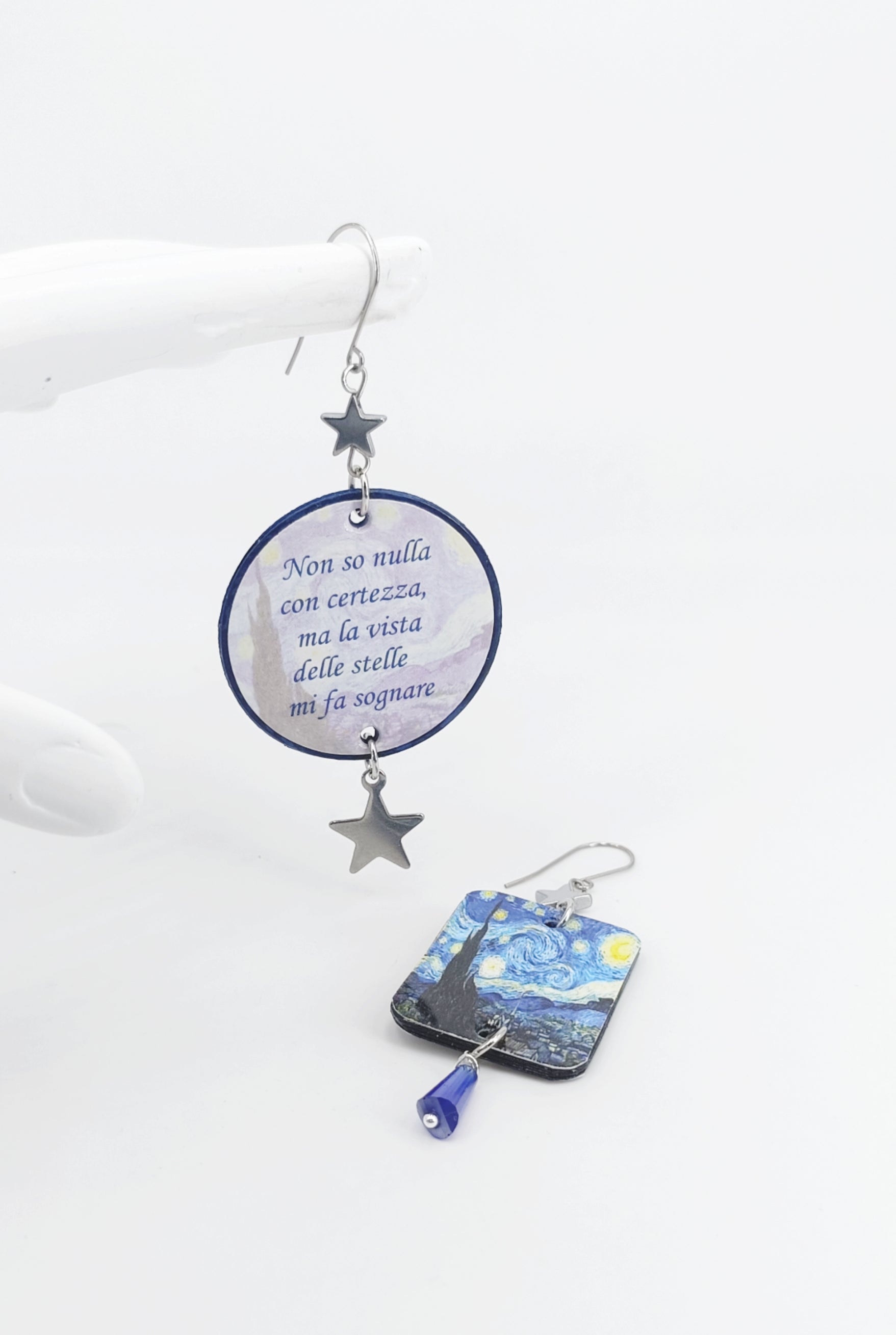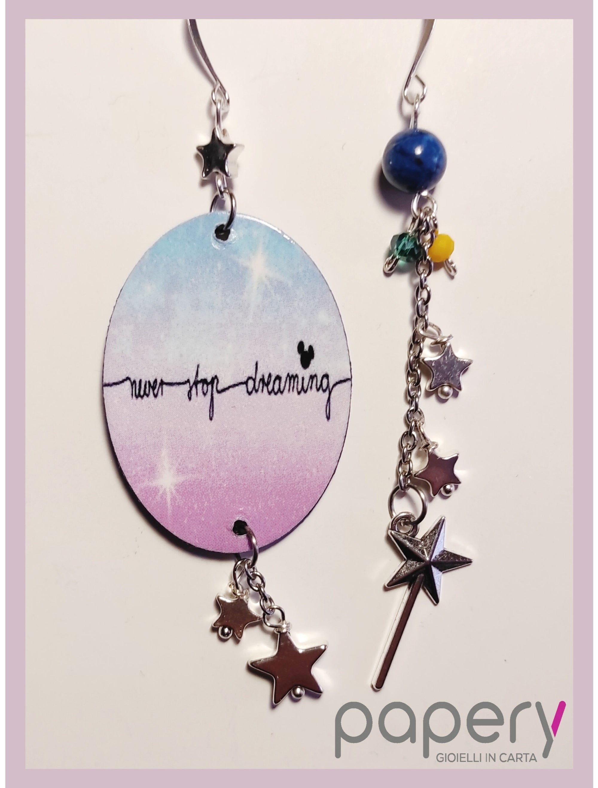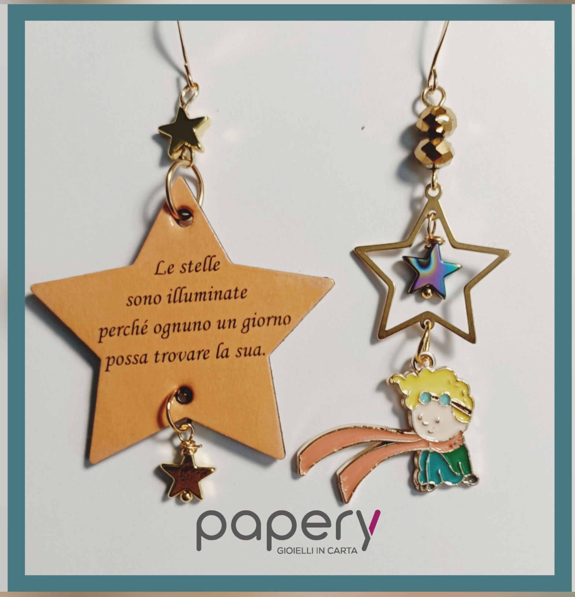 Esplora la magia del cosmo con i nostri gioielli e orecchini di carta, leggeri ed anallergici per il massimo comfort. Ogni creazione è realizzata con una raffinata tecnica multistrato, che dona profondità e resistenza, ispirandosi alle meraviglie del mondo stellare.