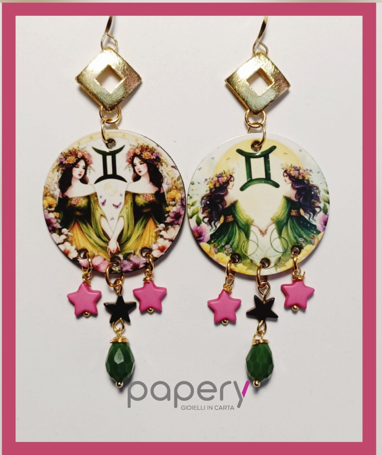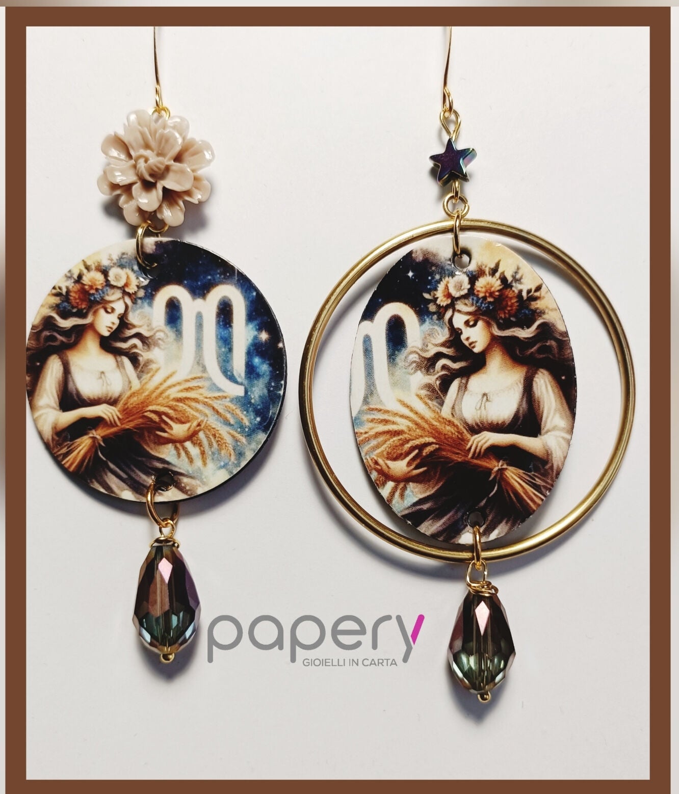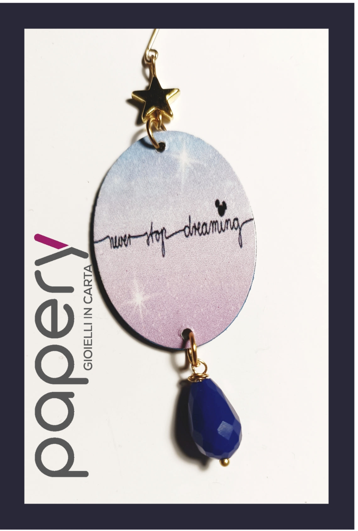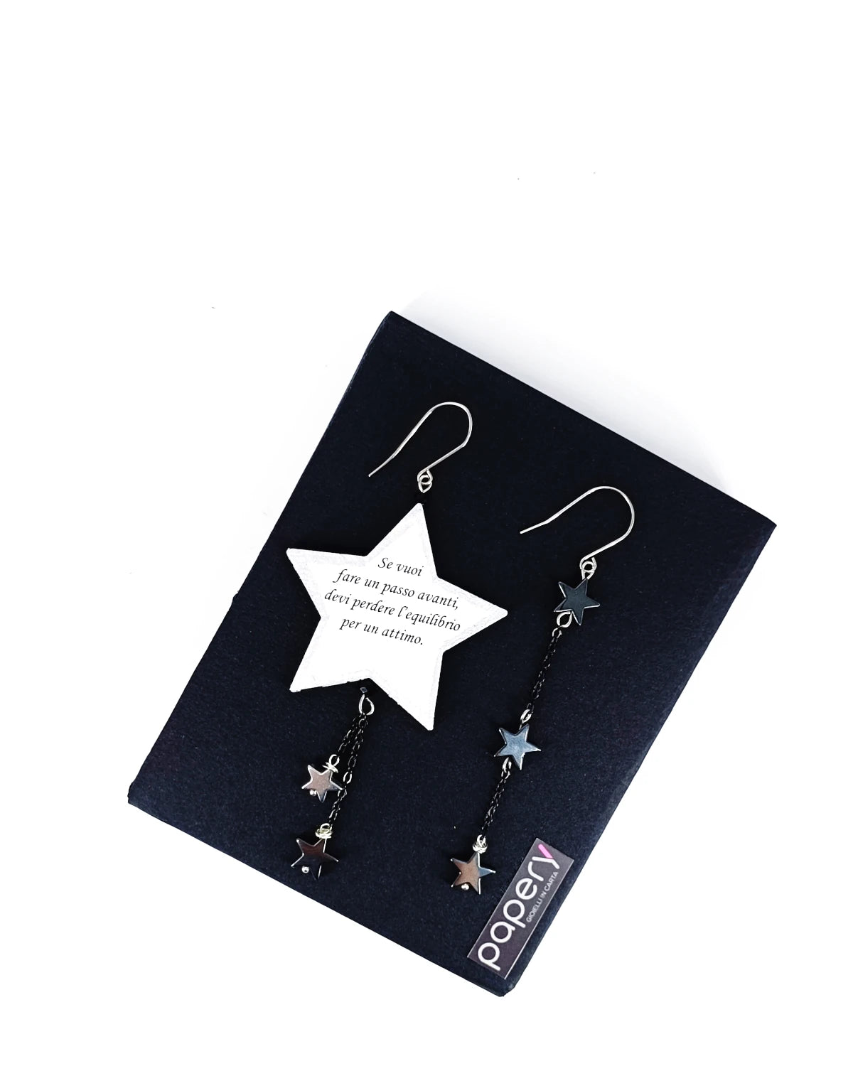 Esplora la magia del cosmo con i nostri gioielli e orecchini di carta, leggeri ed anallergici per il massimo comfort. Ogni creazione è realizzata con una raffinata tecnica multistrato, che dona profondità e resistenza, ispirandosi alle meraviglie del mondo stellare.