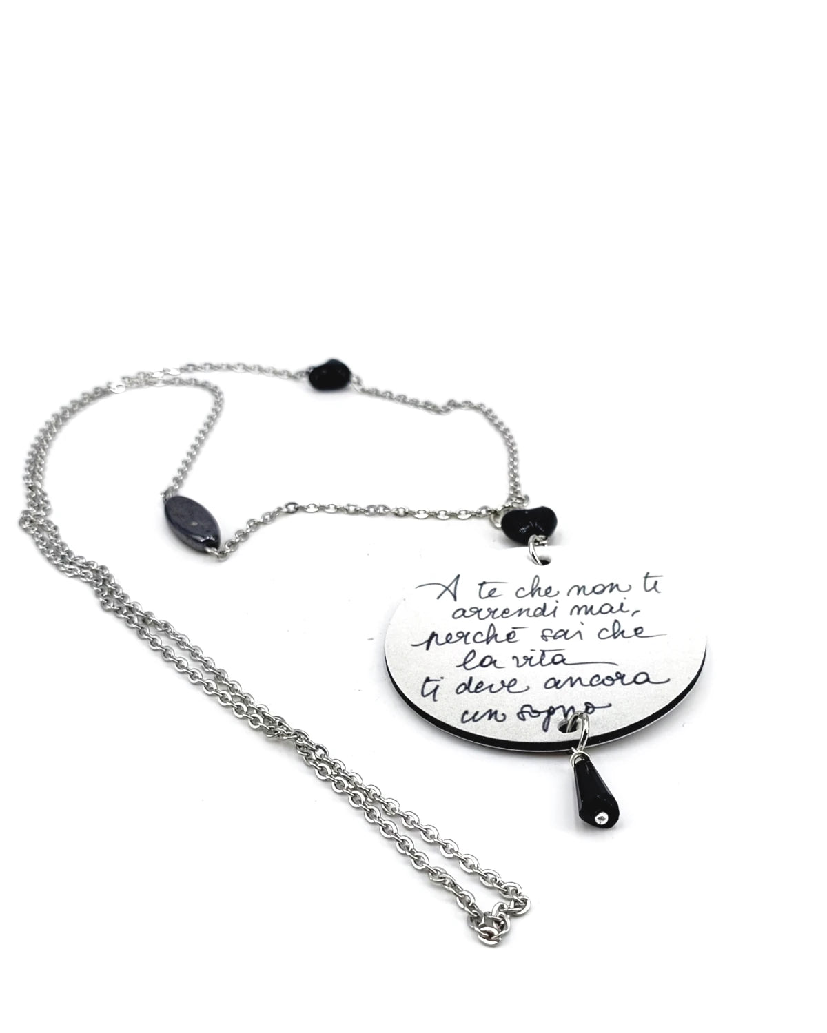 Le nostre collane di carta con medaglioni e non solo, sono un mix di eleganza e originalità. Realizzati con tecnica multistrato e trattati con un lucido protettivo, i medaglioni sono ricoperti da grafiche a tema che possono essere personalizzate. Montati su componenti in alluminio o acciaio anallergico. Indossa un pezzo d'arte che racconta la tua storia!