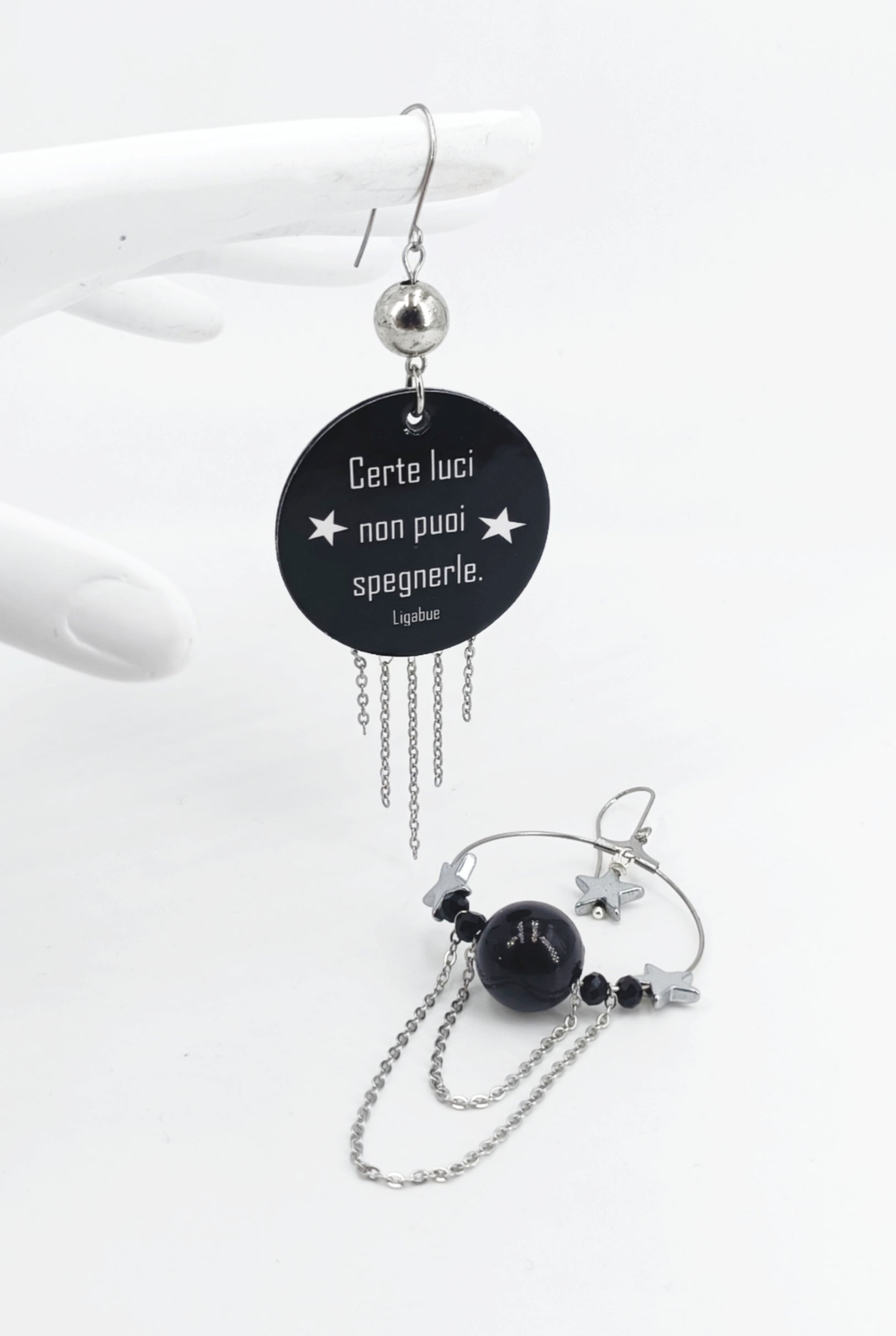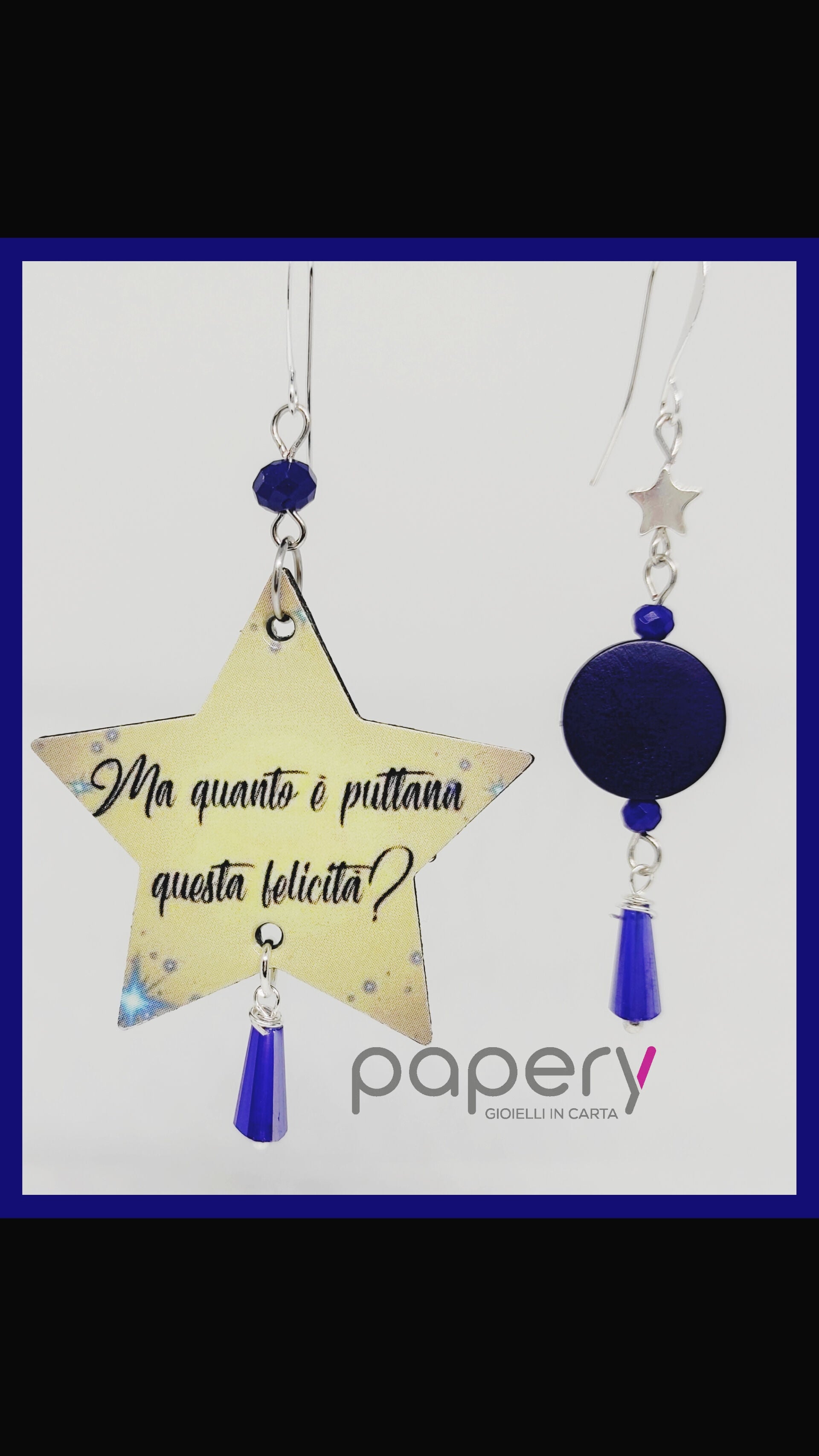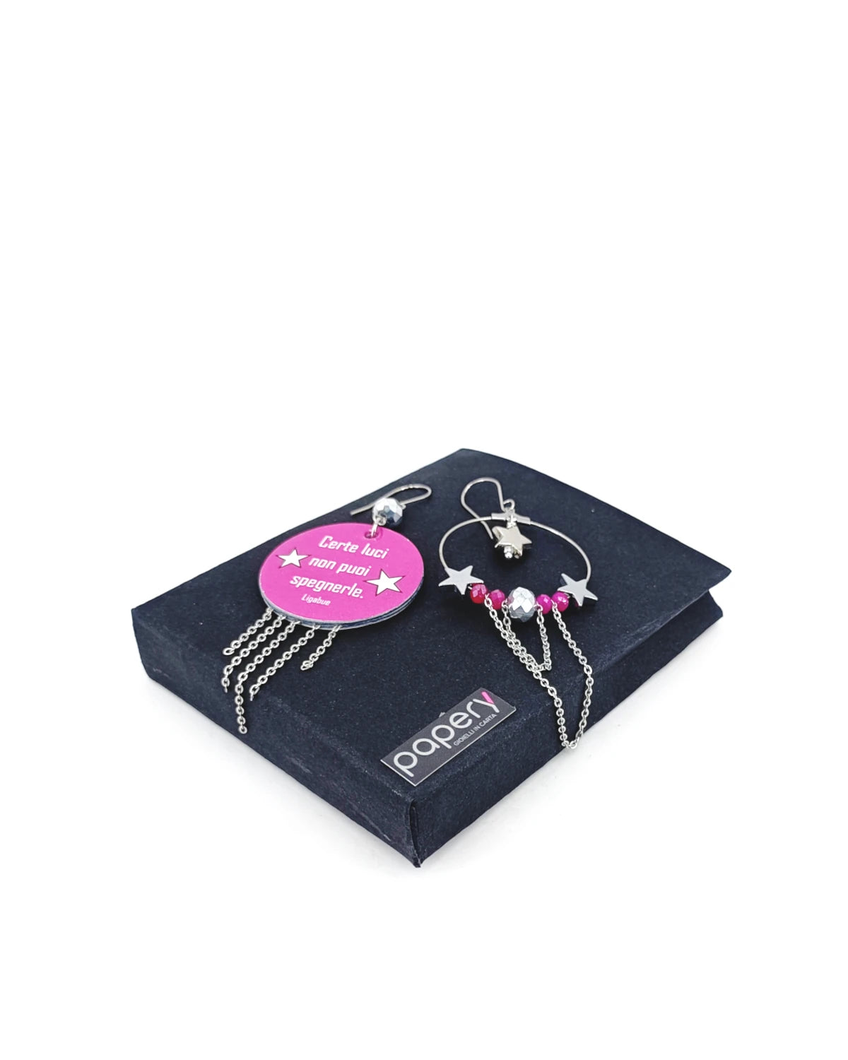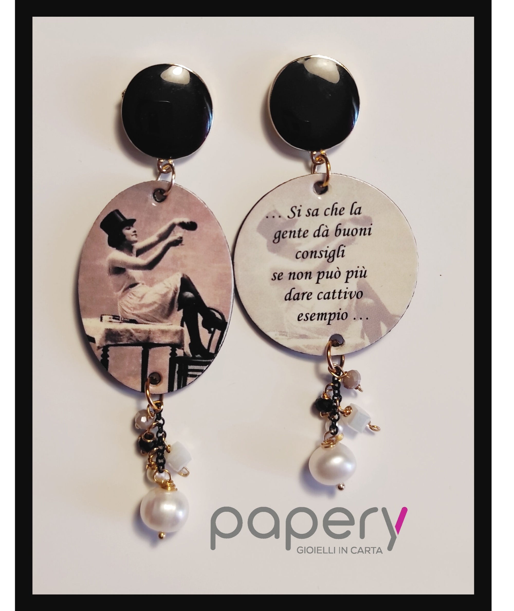 Gioielli e orecchini in carta leggeri e anallergici, con un affascinante effetto legno creato dalla tecnica multistrato. Ogni pezzo è impreziosito da immagini e testi delle tue canzoni e cantanti preferiti, trattato con un lucido protettivo che lo rende resistente alle intemperie.