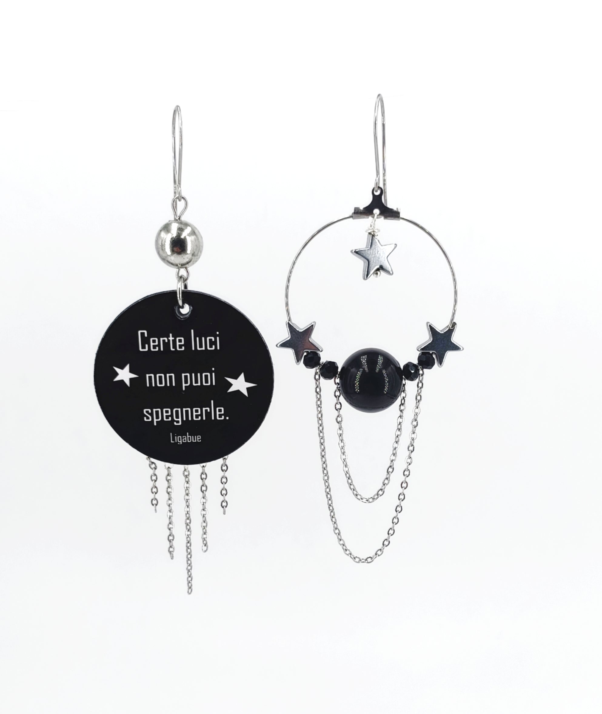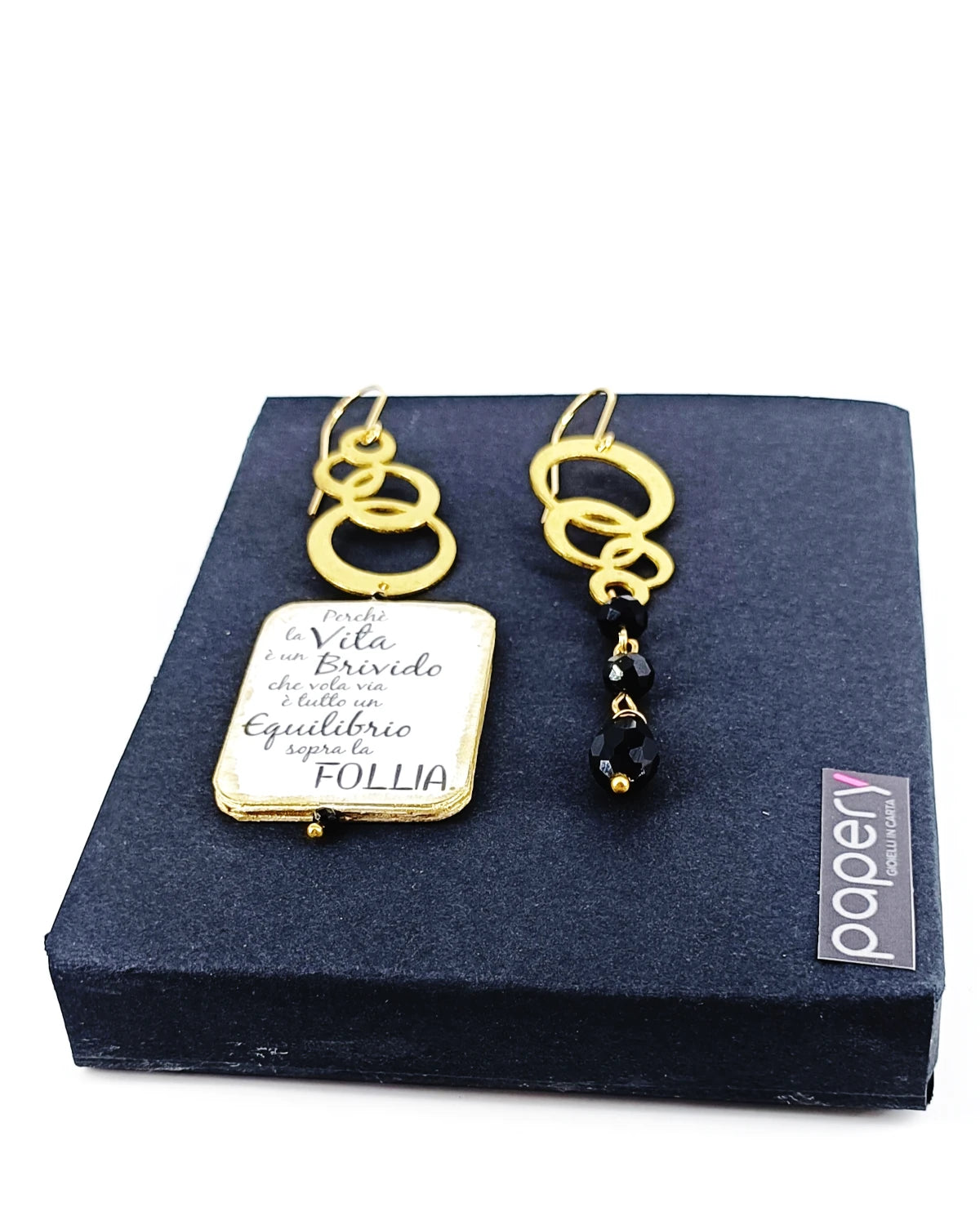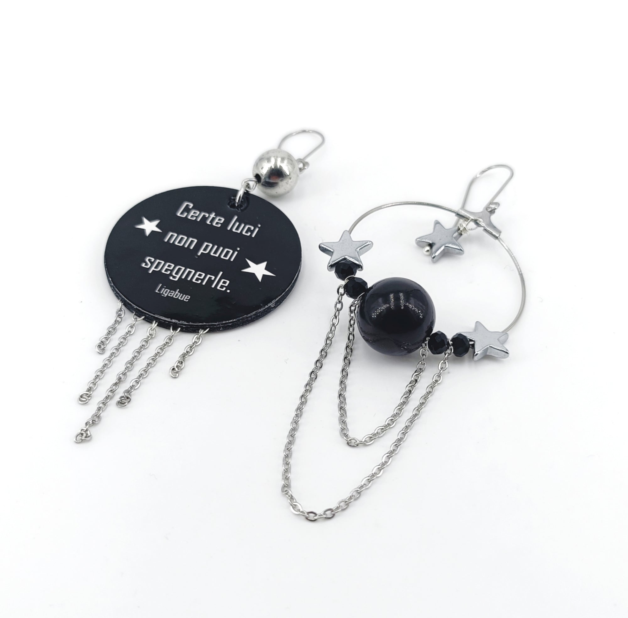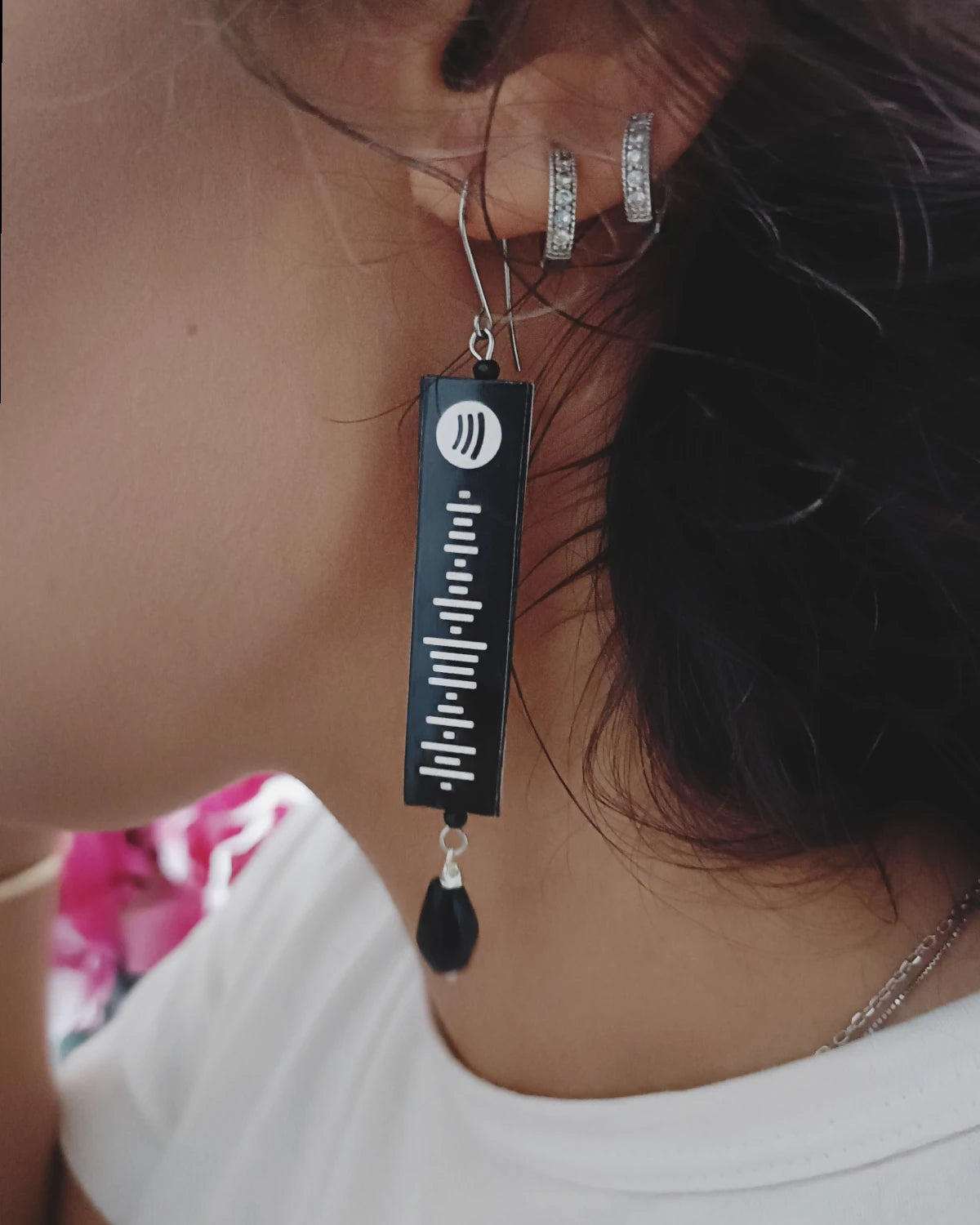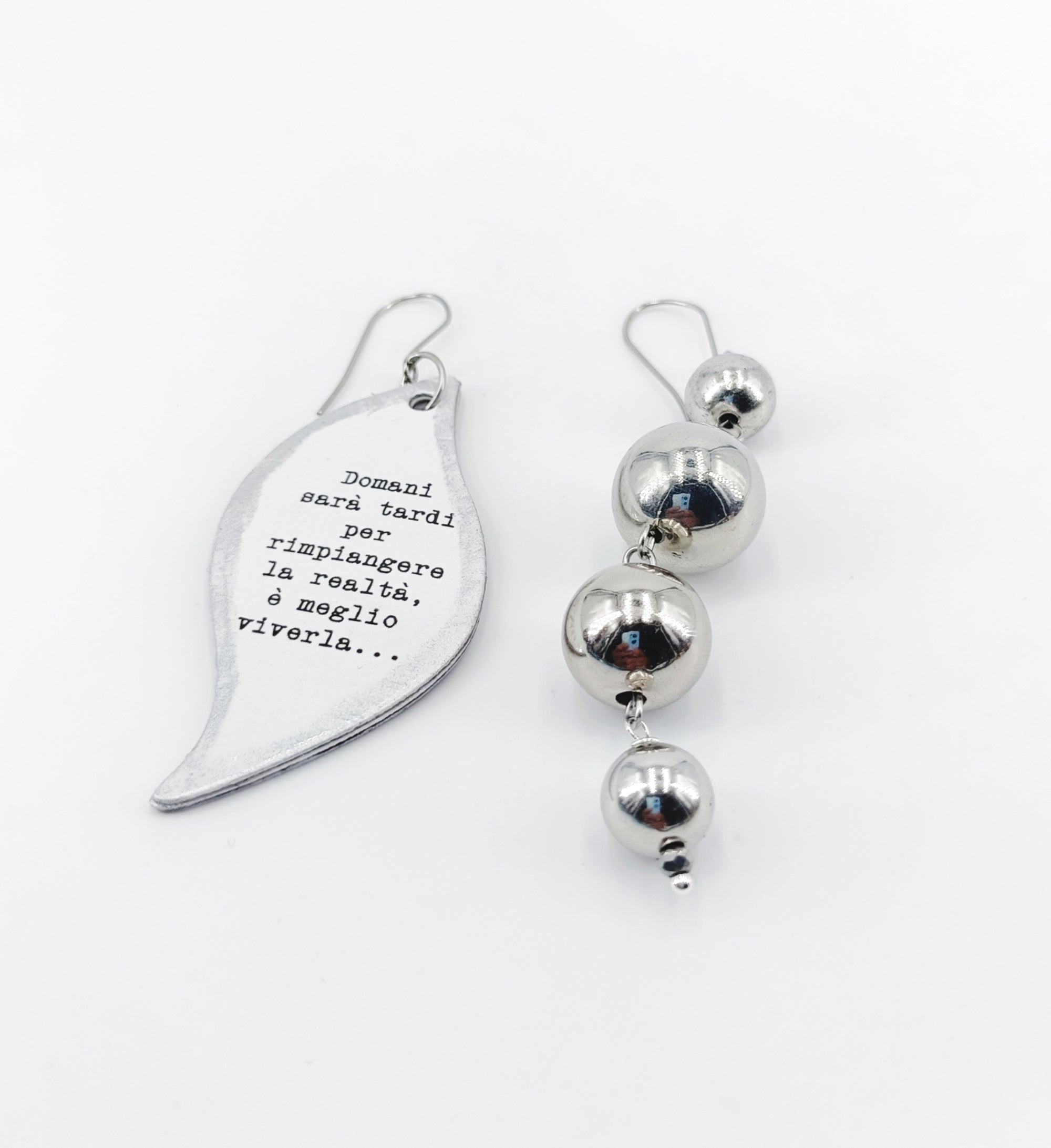 Gioielli e orecchini in carta leggeri e anallergici, con un affascinante effetto legno creato dalla tecnica multistrato. Ogni pezzo è impreziosito da immagini e testi delle tue canzoni e cantanti preferiti, trattato con un lucido protettivo che lo rende resistente alle intemperie.