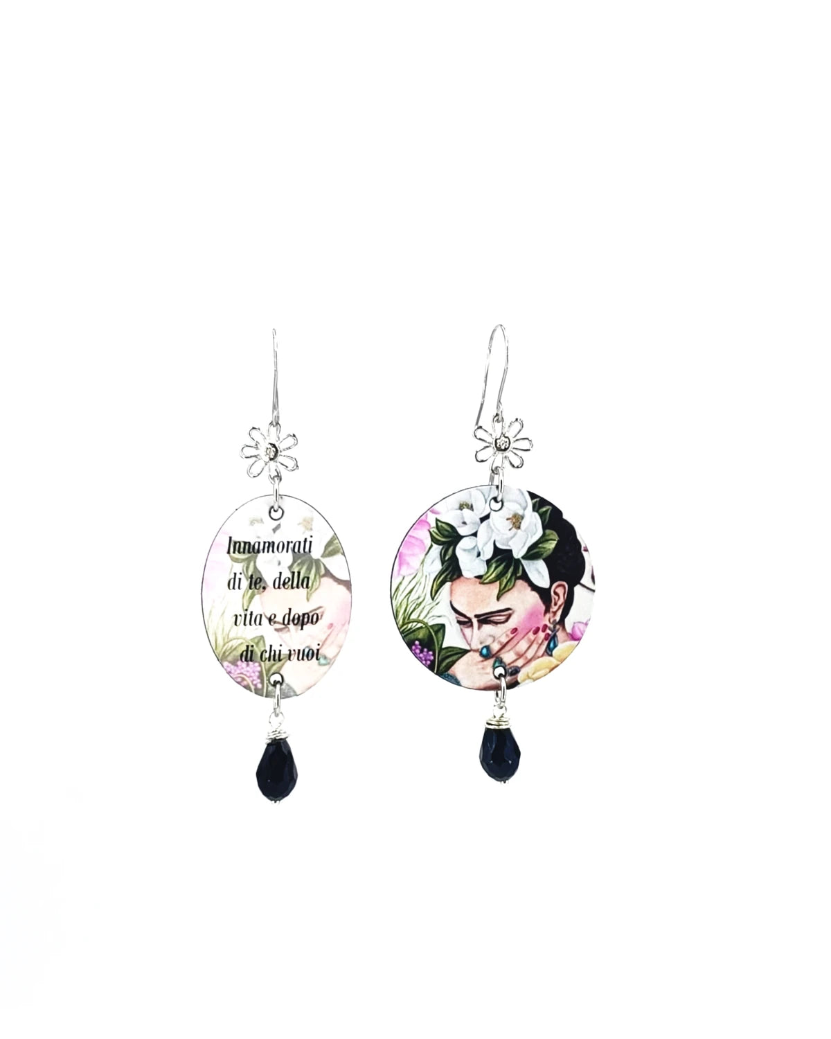 Gioielli e orecchini ispirati a Frida Kahlo, alle sue citazioni ispiratrici e ai simboli dei cuori sacri, che raccontano storie di passione, forza e resilienza.
